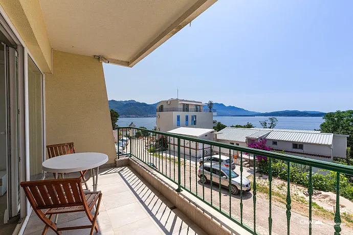 A spacious one-bedroom apartment of 73m² located in a modern residential complex in Bijela. The apartment is fully furnished and ideal for comfortable year-round living. The complex offers numerous amenities including a large swimming pool, tennis court, landscaped garden, and security. The apartment features a bright living room, separate bedroom, kitchen with dining area, bathroom, and a terrace with a sea view.