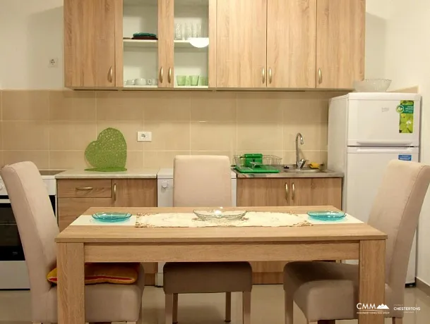 The apartment is fully furnished, there is air conditioning in the living room and bedroom.