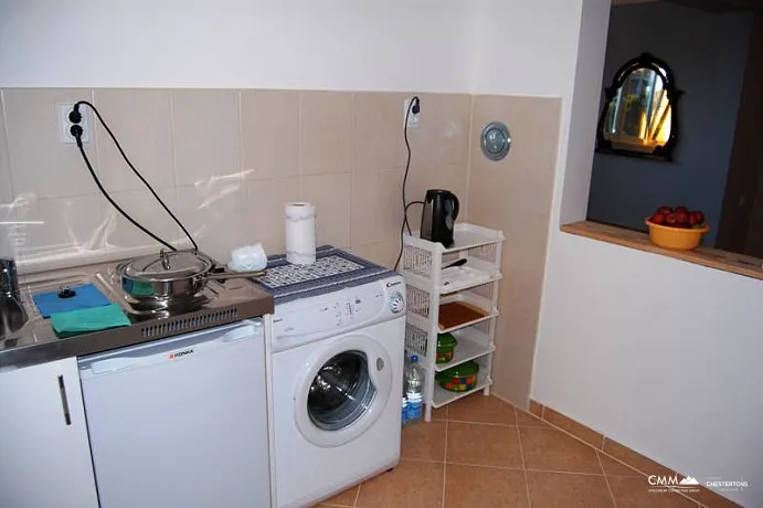 from the house, a snack bar is 100 meters away, and the next big grocery and hardware store is 150