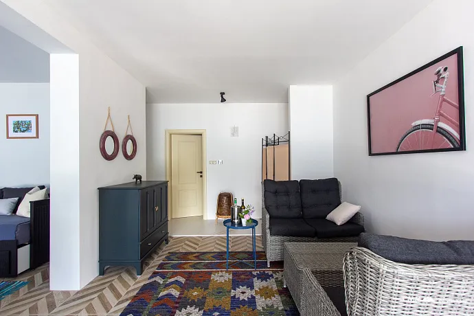 Each floor of the villa has a separate entrance and a terrace, allowing it to be used not only as a private residence but also for seasonal rentals. The property has undergone a complete renovation, with environmentally friendly materials used for the repairs. New facade, sewage/water pipes, internal eco-plaster, underfloor heating on the first floor, power cables, aluminum windows, a water reservoir, and a water pump have been installed.